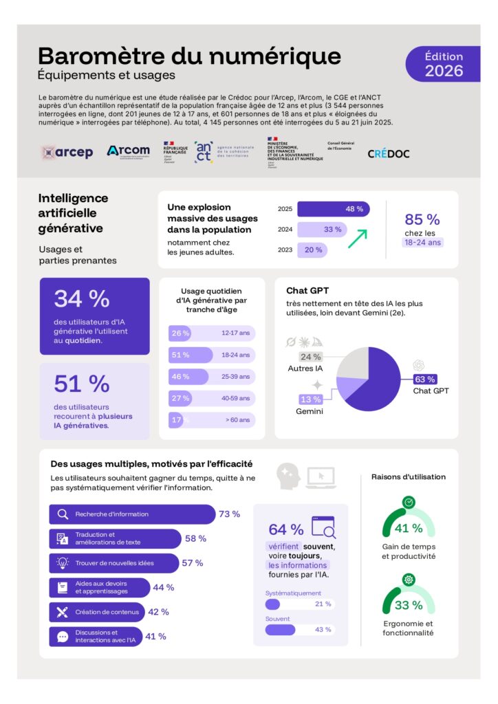 Baromètre du numérique 2026 : l’IA générative s’installe dans les usages des Français